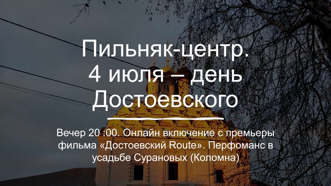 4 июля в 20:00 организуем прямое онлайн включение с театрального перфоманса, приуроченного к выходу фильма и Дню Достоевского из старинной усадьбы Сурановых при музее истории со вкусом «Коломенская пастила».
