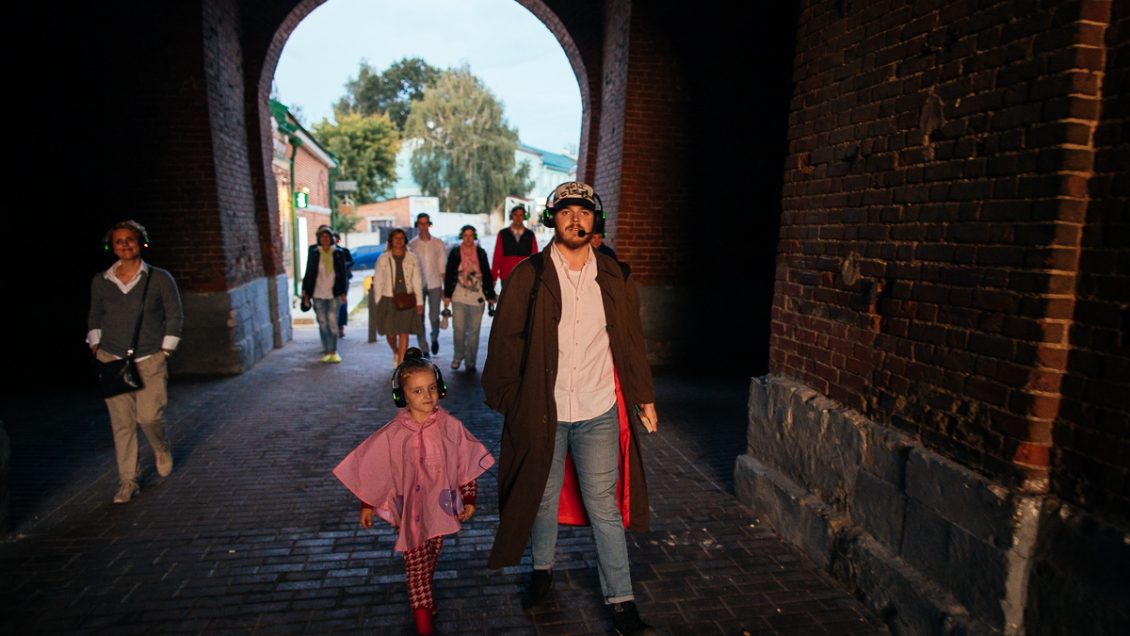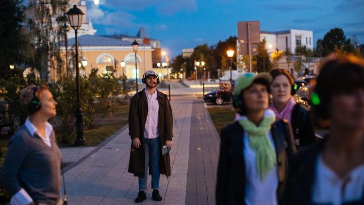 Моноспектакль-променад «Ерофеев и другие ангелы» превращает старую часть Коломны в настоящие театральные подмостки. Его главный персонаж – Митя, учитель литературы из-90-х гг., его герой – писатель Венедикт Ерофеев. Зрители гуляют по городским улицам в сопровождении Мити, чей рассказ звучит в наушниках, сопровождаемый музыкой и голосами ангелов. Наушники светятся, привлекая внимание, и слушатели спектакля сами становятся похожими на группу ангелов, преображаясь из просто зрителей в участников городского действа.